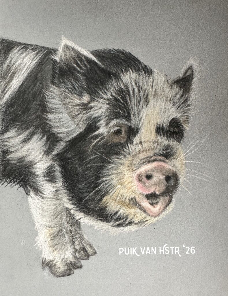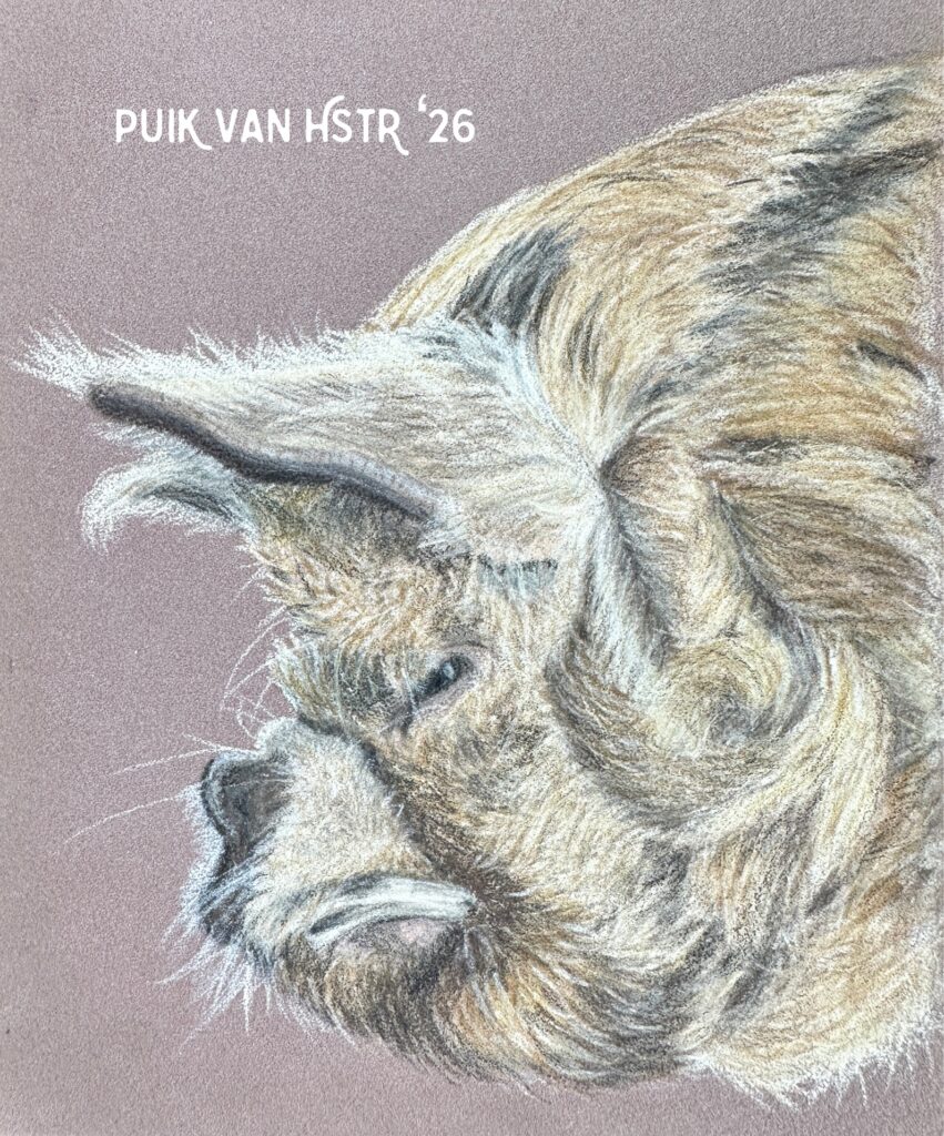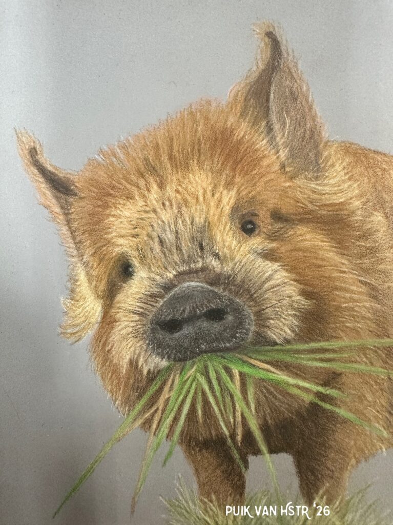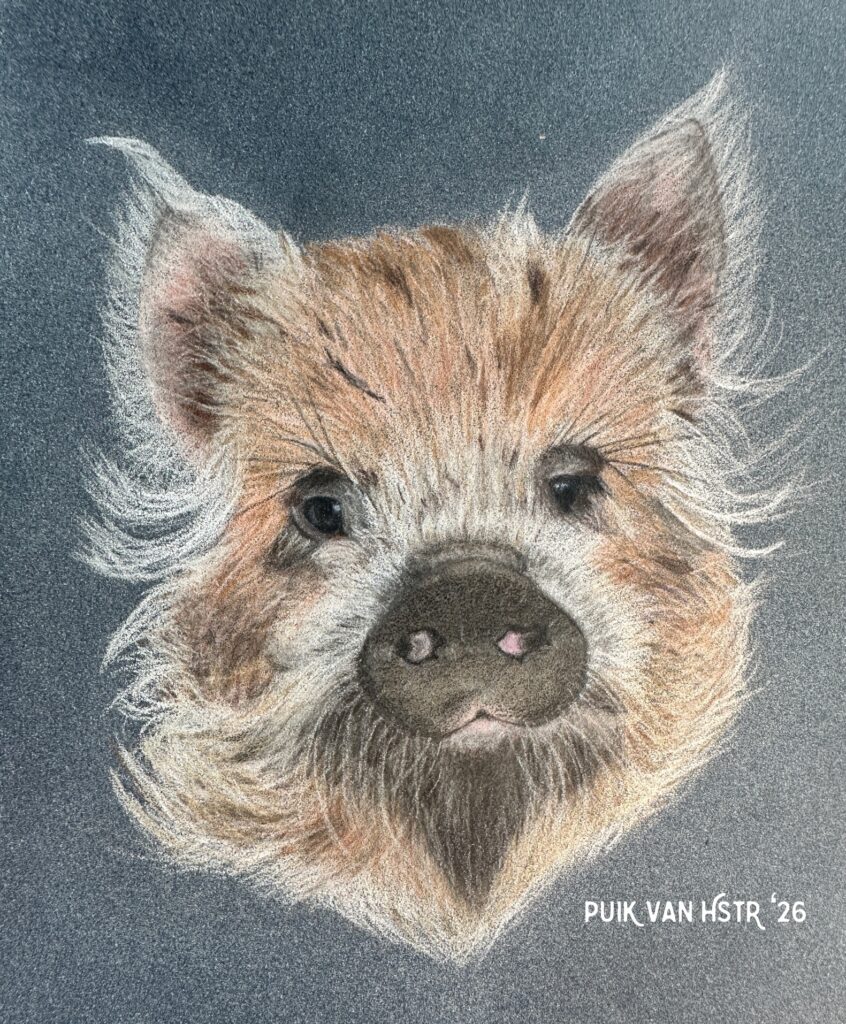 Puk in kleurpotlood, 12×18 cm